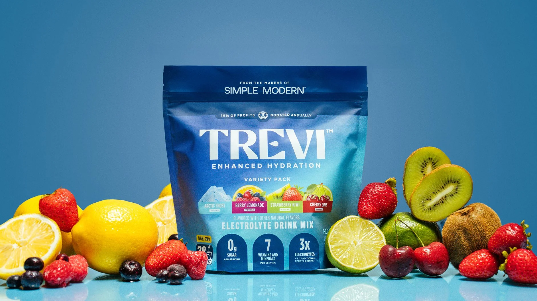 Trevi Hydration was built on a simple but overlooked insight: hydration only works if people actually want to drink it. I led the visual identity and brand strategy for Trevi, with a clear focus on reframing electrolytes around flavor-first hydration—without compromising function. In a category dominated by harsh, salty profiles and performance-only messaging, Trevi was designed to challenge the idea that taste and efficacy are a tradeoff. From brand positioning and messaging to packaging, photography, and visual systems, every decision centered on making hydration feel vibrant, inviting, and enjoyable. The result is a brand that prioritizes real electrolyte levels and real flavor—proving that better taste leads to better hydration. Trevi doesn’t ask people to tolerate their hydration. It invites them to enjoy it.